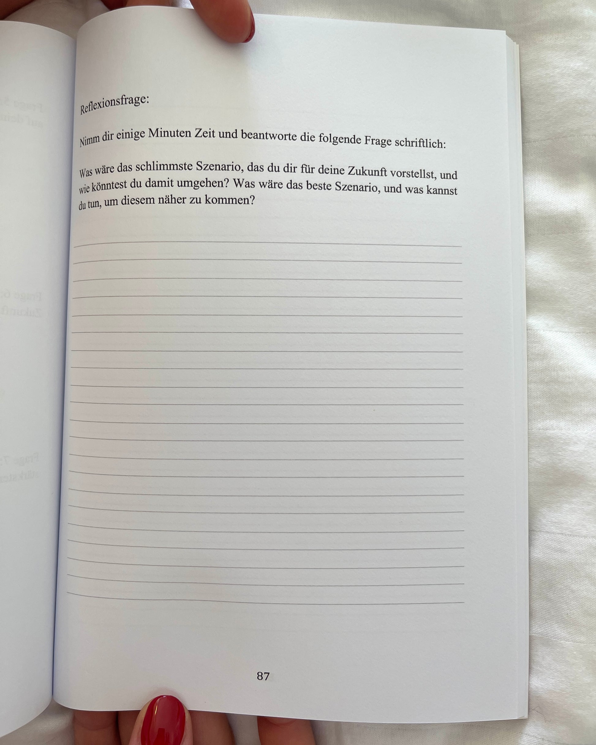 - Raum für dich: Am Ende jedes Kapitels wartet eine kraftvolle Frage, die dir hilft, dich auf das Wesentliche zu fokussieren – auf dich selbst. Du hast Platz, um deine Gedanken, Wünsche und Ängste niederzuschreiben und dein eigenes Heilungsjournal zu führen.